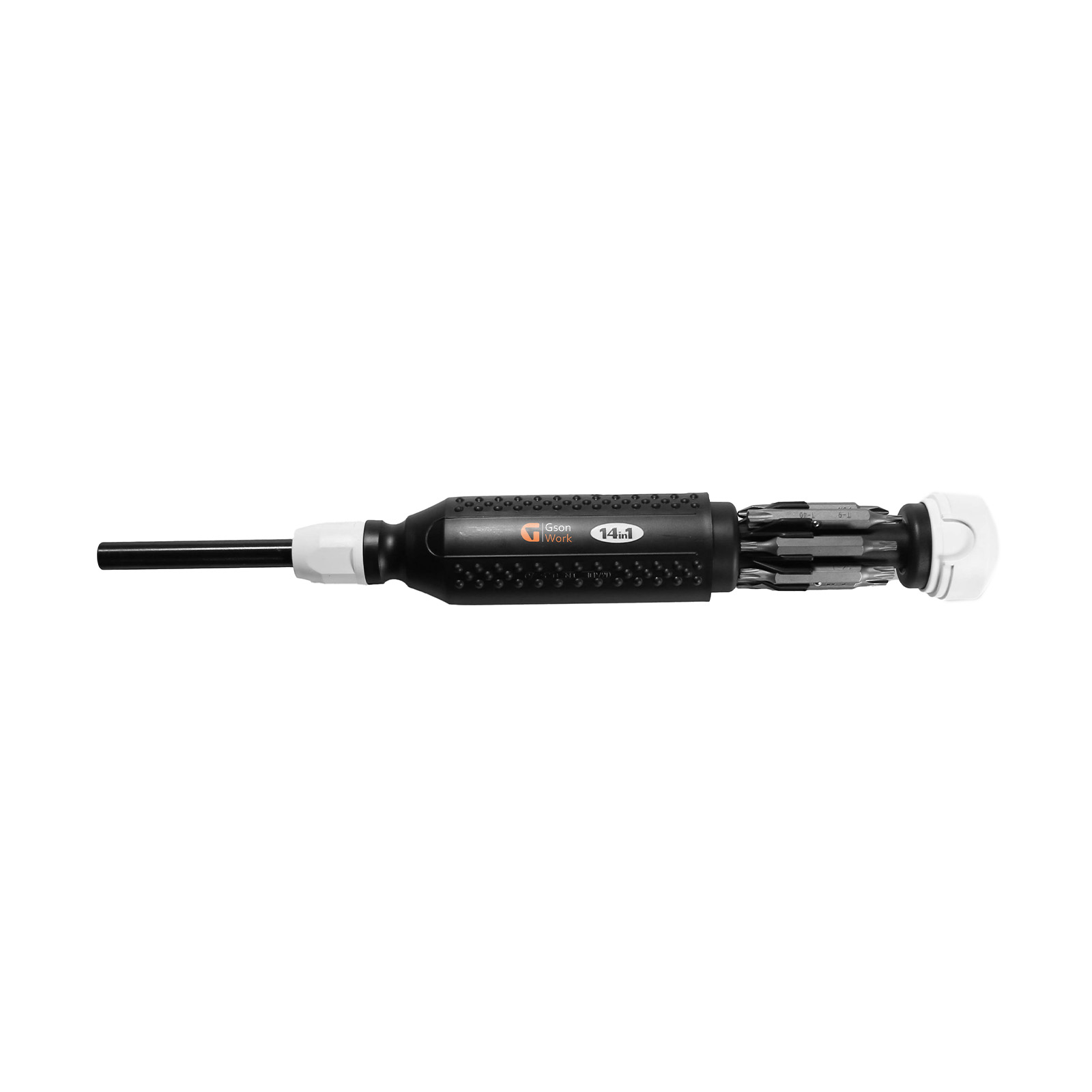 Produkt: 14 in1 Screwdriver|Innehåller: Slotted Bit 5.5-Ventil/Valve Phillips Bit 1-2 Torx Bit T9-T40 Torx Bit T10-T15 Torx Bit T20-T25 Torx Bit T27-T30 1/4″ hex bit|Antal i kartong: 50