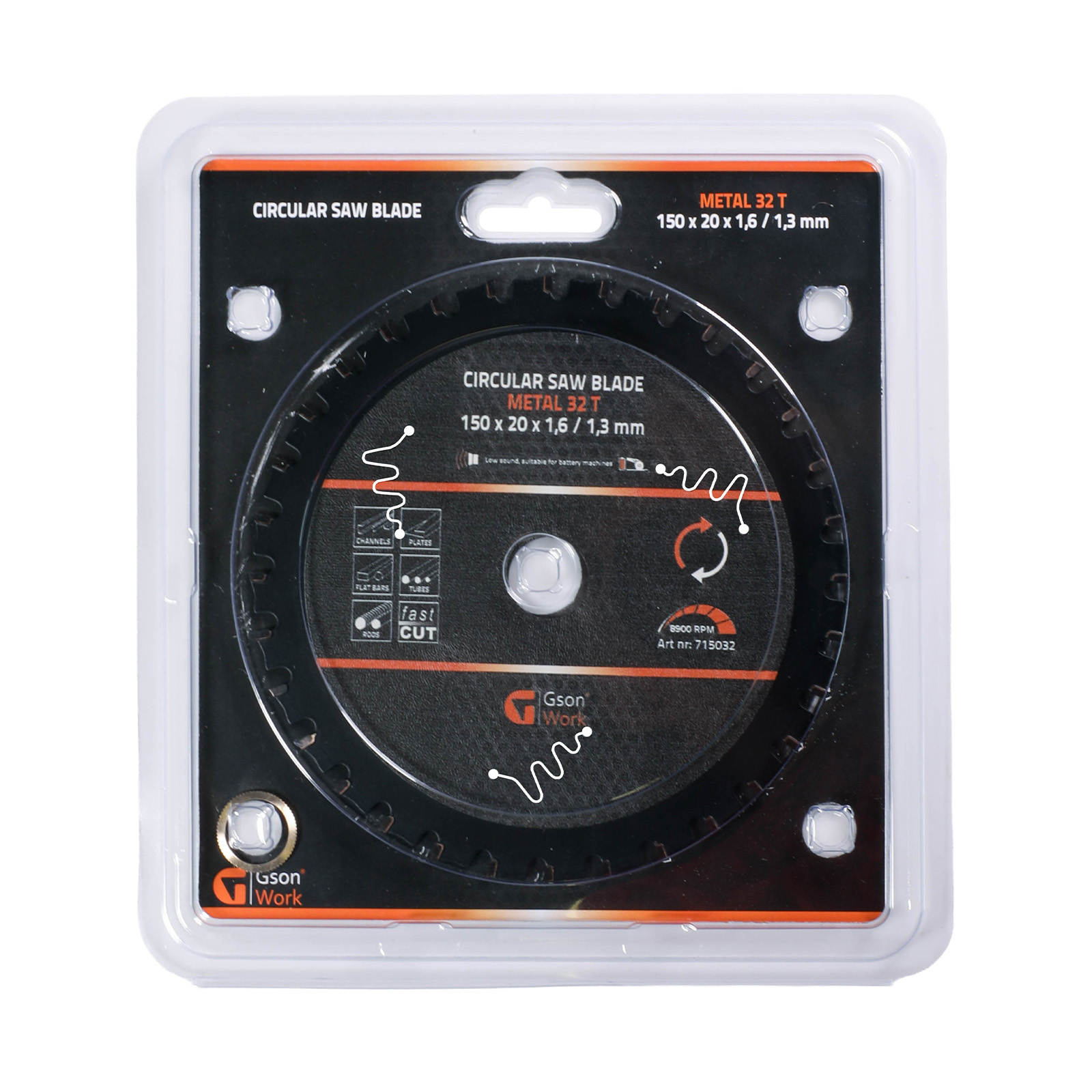 Produkt: Circular Saw Blade Metal|Tänder: 32|Ø Sågklinga: 150|Ø Centrumhål: 20|Skärbredd: 16|Klingbredd: 13|Antal i kartong: 50