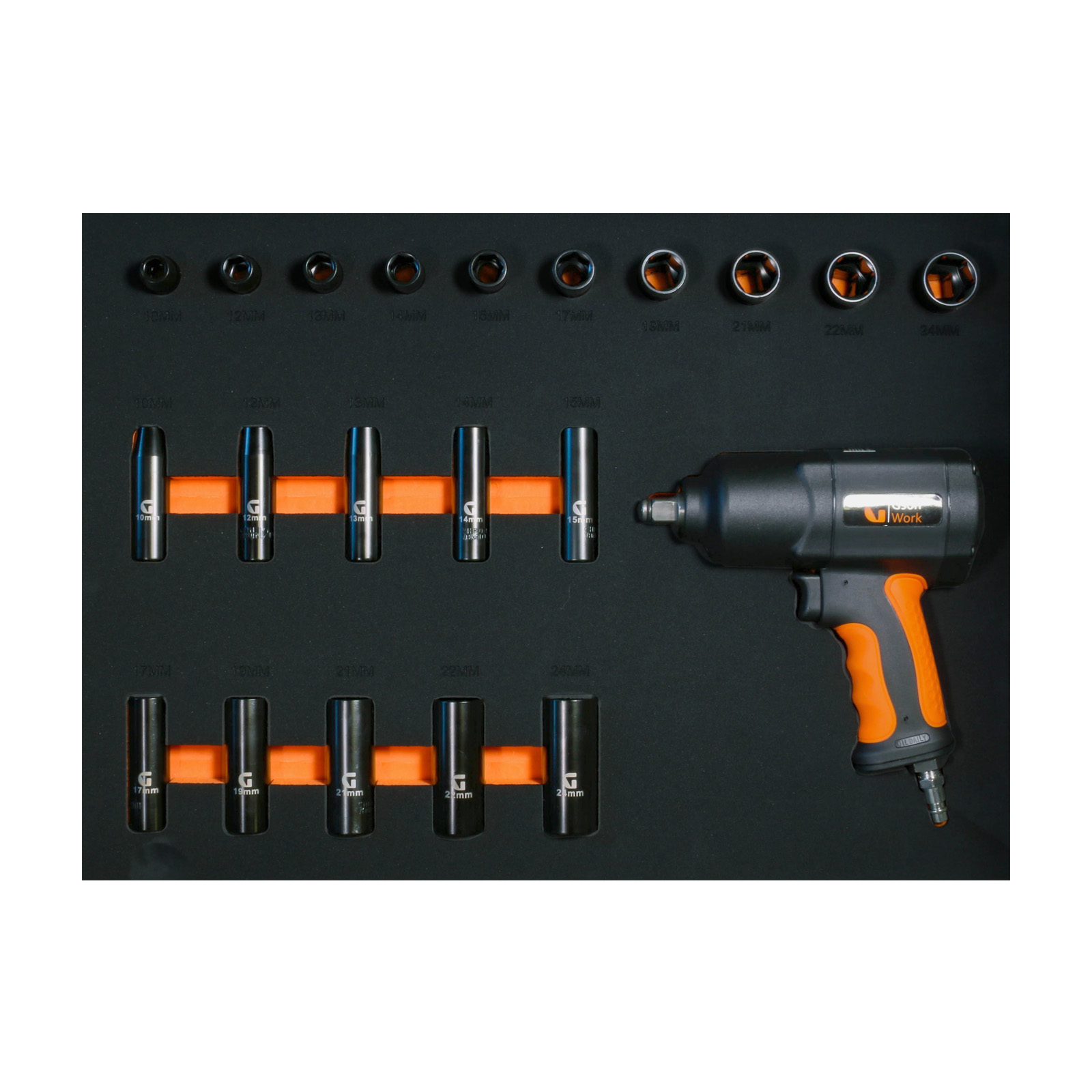 Produkt: Inlägg för verktygsvagn: Impact/Deep Socket 10-24 mm + Composite Air Impact Wrench 1/2″ 1600 N.M