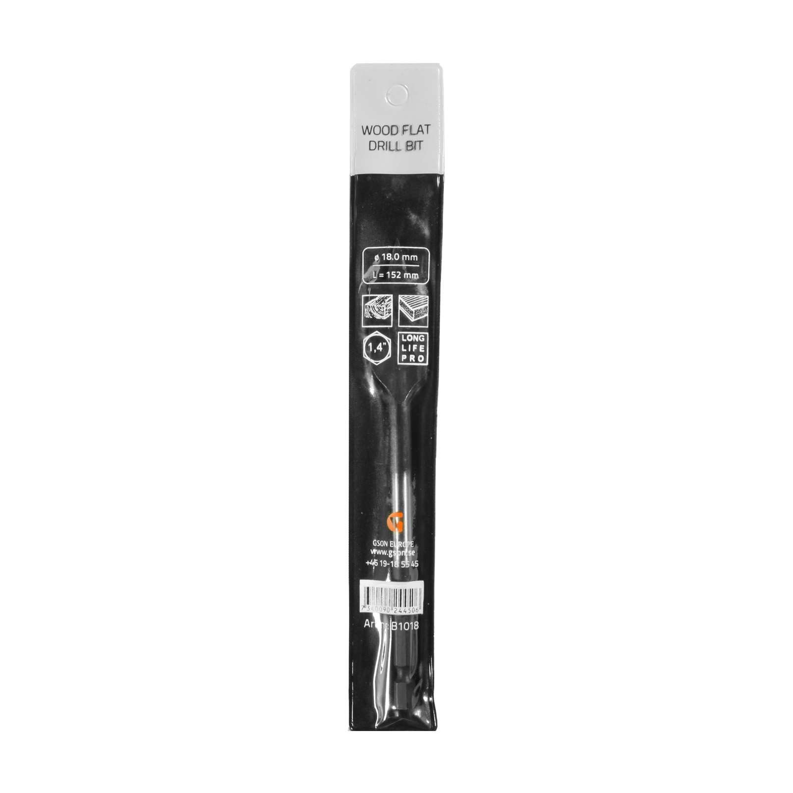 Flatborr för mjukt trä och gipsskivor. Slipad centrumspets och skärande egg. 635 mm (1/4”) hexfäste.